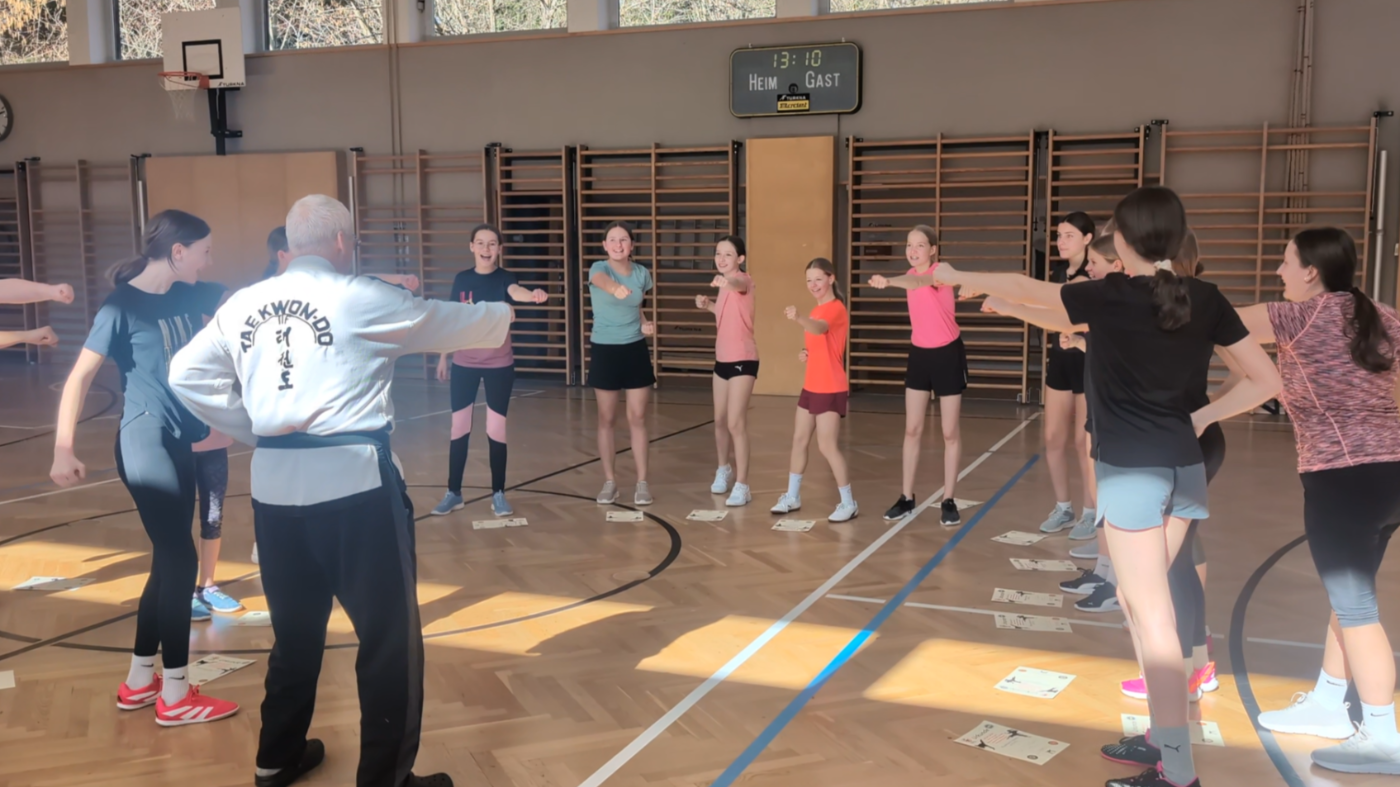 Die Schülerinnen der 3a und 4a nahmen vor Kurzem an einem dreistündigen Selbstverteidigungs-Workshop teil. Unter der Anleitung von Christian Zangerl lernten sie, wie wichtig ein sicheres Auftreten und einfache, aber wirkungsvolle Abwehrtechniken sind.